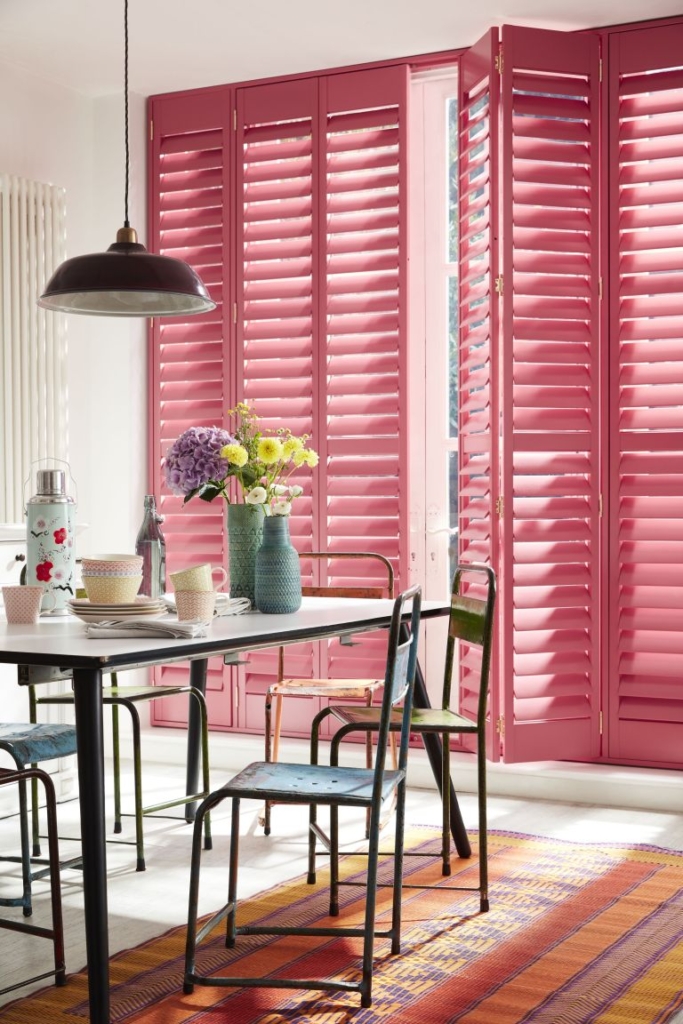 - Shutters work on both windows and French doors in a kitchen extension for a consistent look – browse our guide for tips on how to choose window shutters.